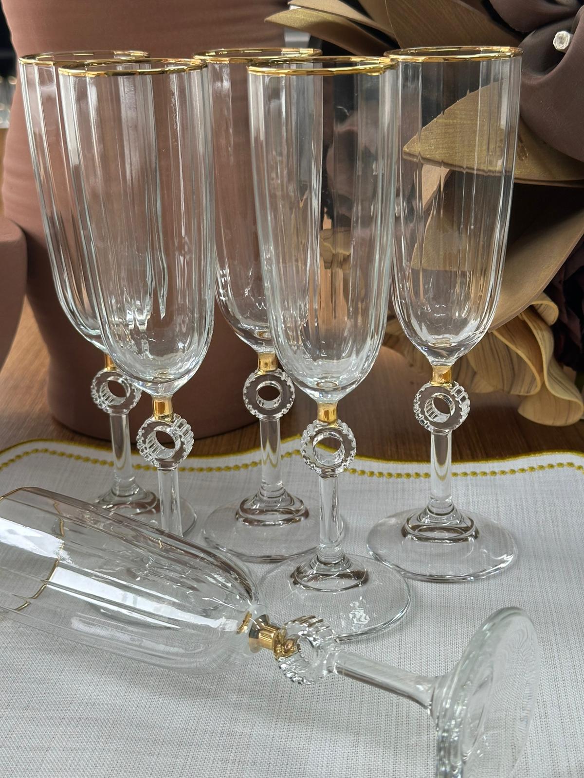 Flüt Kadeh & Kahve Yanı Su Bardak Gold 6'lı