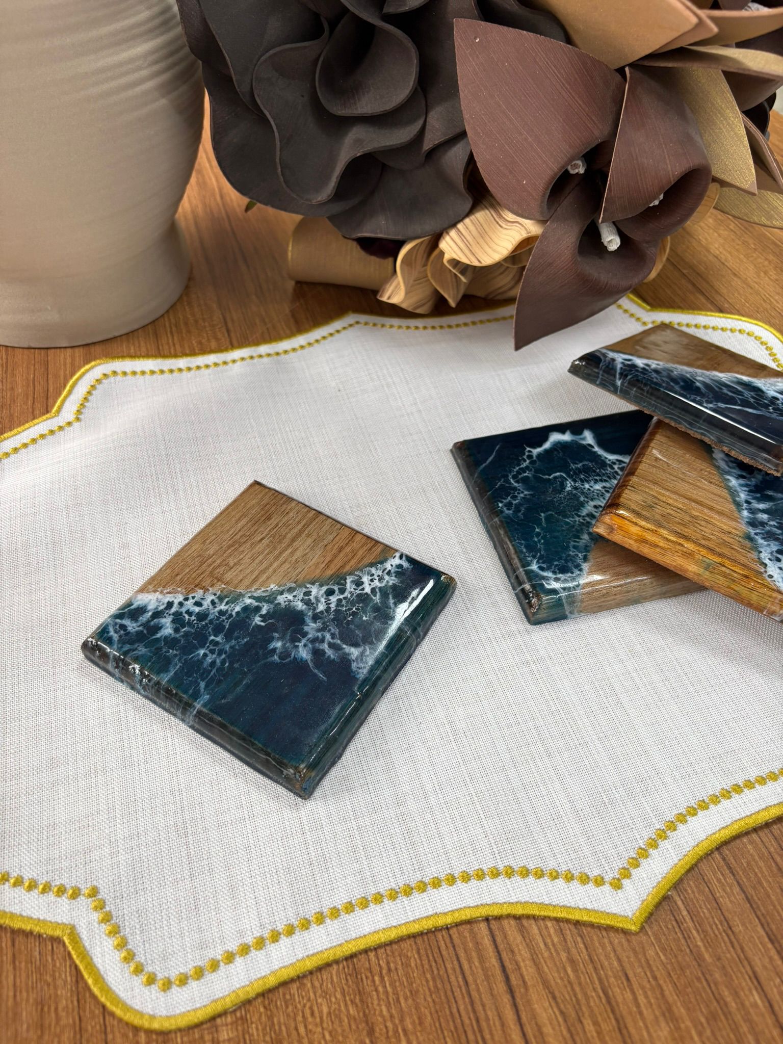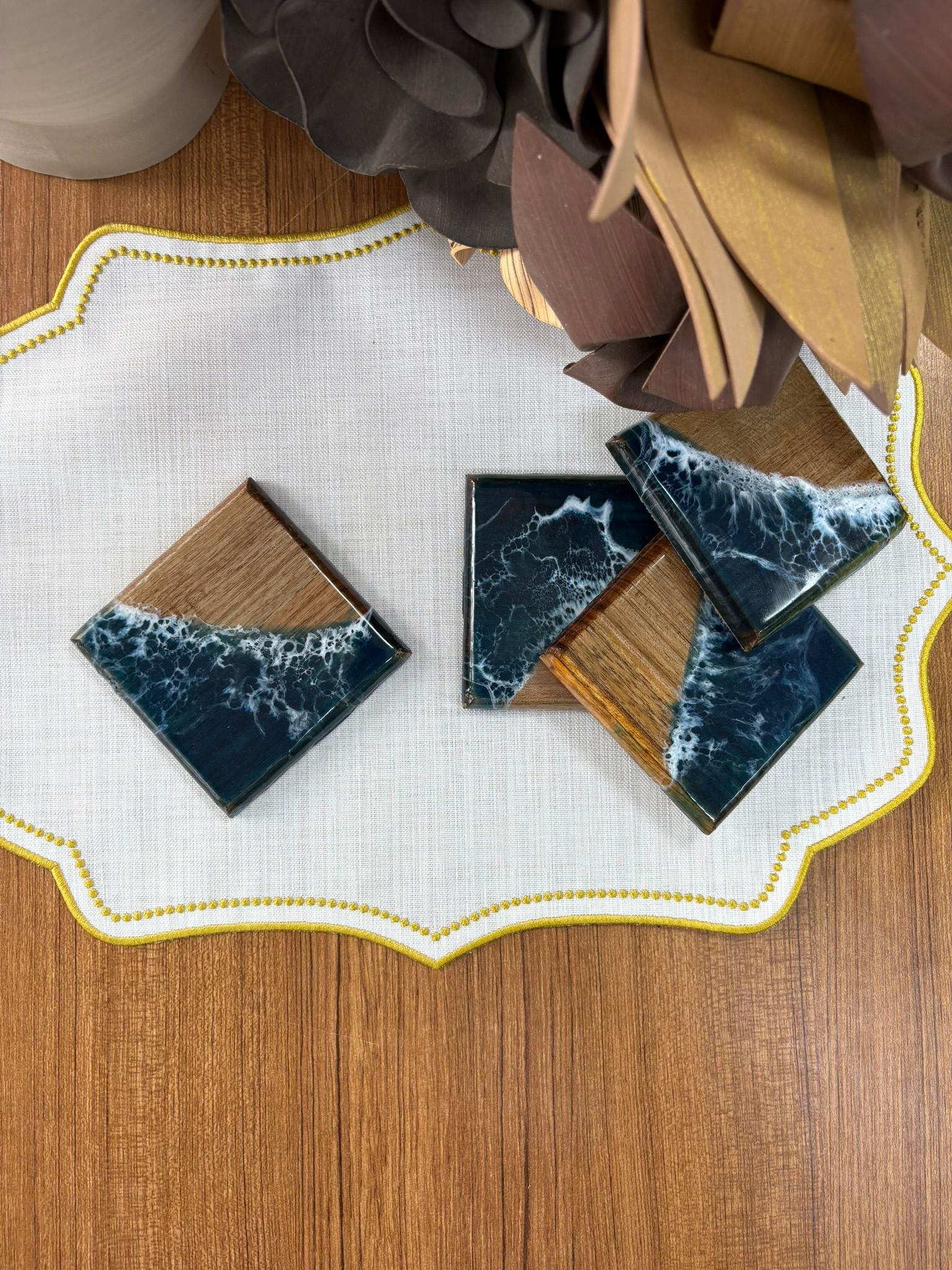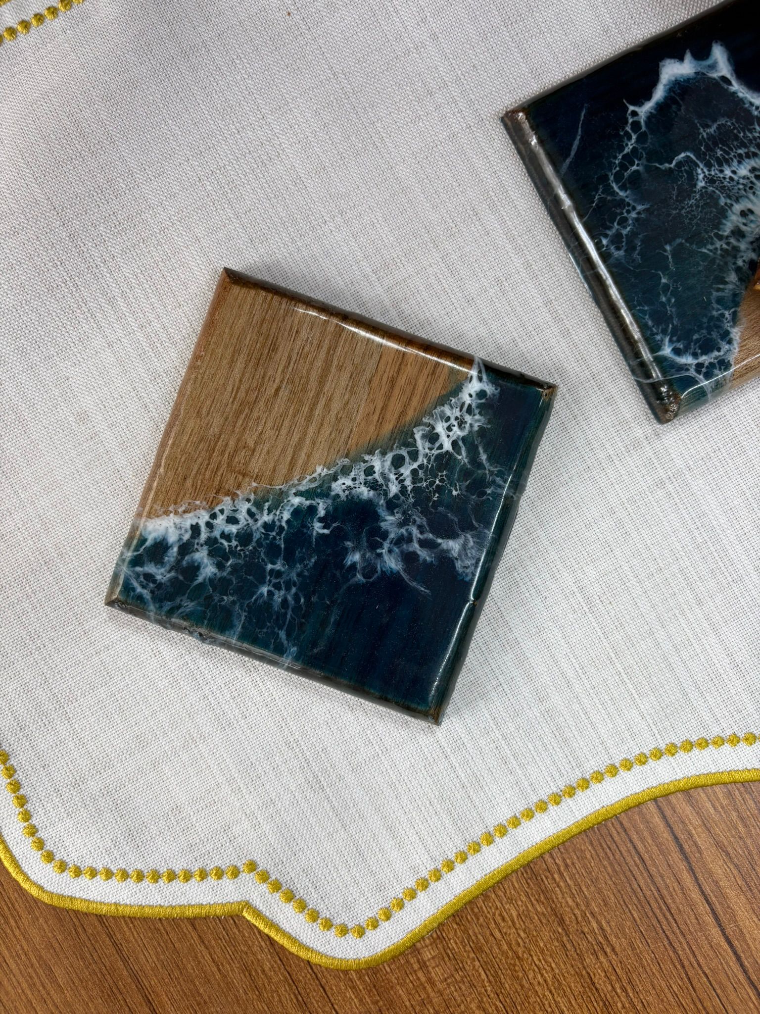 Doğal Okyanus Efektli Kare Epoksi Bardak Altlığı